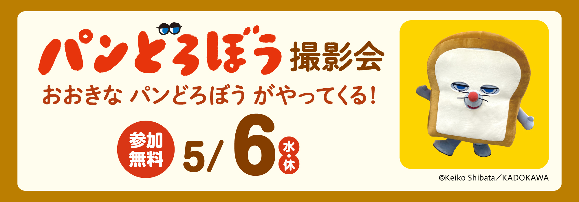 <5月6日(水・休) 開催!>パンどろぼう 撮影会 おおきなパンどろぼうがやってくる!