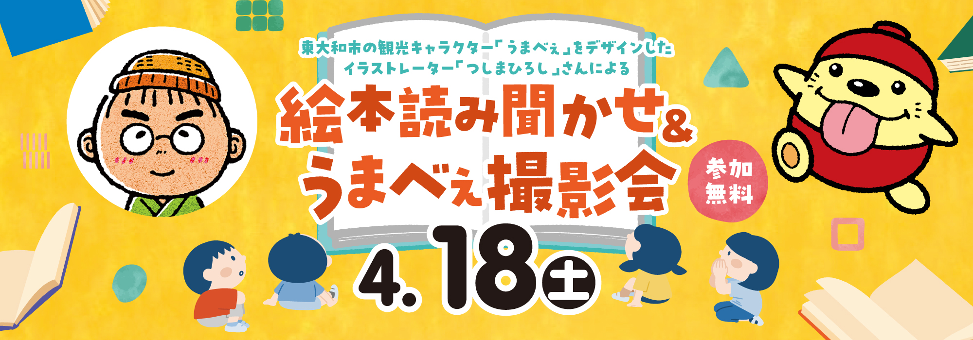 <4/18(土)開催!> 「うまべぇ」をデザインした イラストレーター「つしまひろし」さんによる 絵本読み聞かせ&うまべぇ撮影会