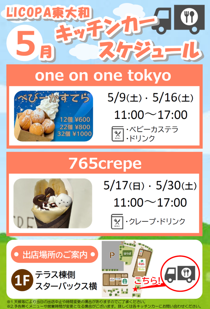 【5月9日(土)・16日(土)・17日(日)・30日(土)】LICOPA 東大和 キッチンカー出店スケジュール